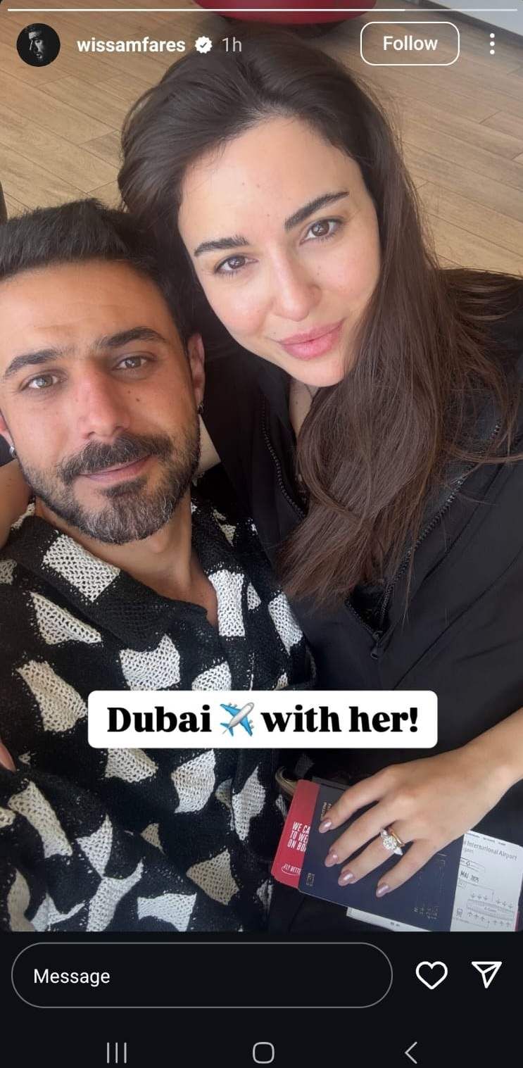 وأشار فارس إلى أنّه وزوجته في طريقهما إلى دبي، وقال تعليقاً على الصورة: "إلى دبي برفقتها".