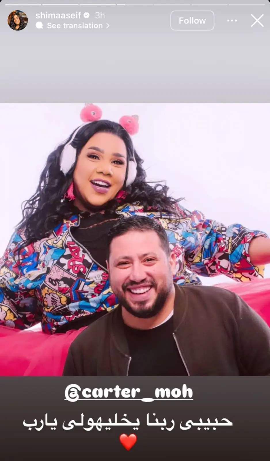 ونشرت شيماء سيف عبر خاصية "القصص" في حسابها الرسمي على "إنستغرام" صورة جديدة تجمعها بزوجها محمد كارتر، وعلّقت عليها بعبارة: "حبيبي ربنا يخليهولي يا رب"، وهو ما اعتبره المتابعون تأكيدًا على نفي الشائعات المتداولة حول وجود خلاف بينهما.جاء هذا الرد بعد أيام من تصرفات أثارت الجدل، إذ لاحظ الجمهور أن يماء سيف ألغت متابعة زوجها على "إنستغرام"، كما قامت بحذف عدد من الصور التي جمعتهما، مما فتح باب التكهنات حول وقوع أزمة بين الزوجين.