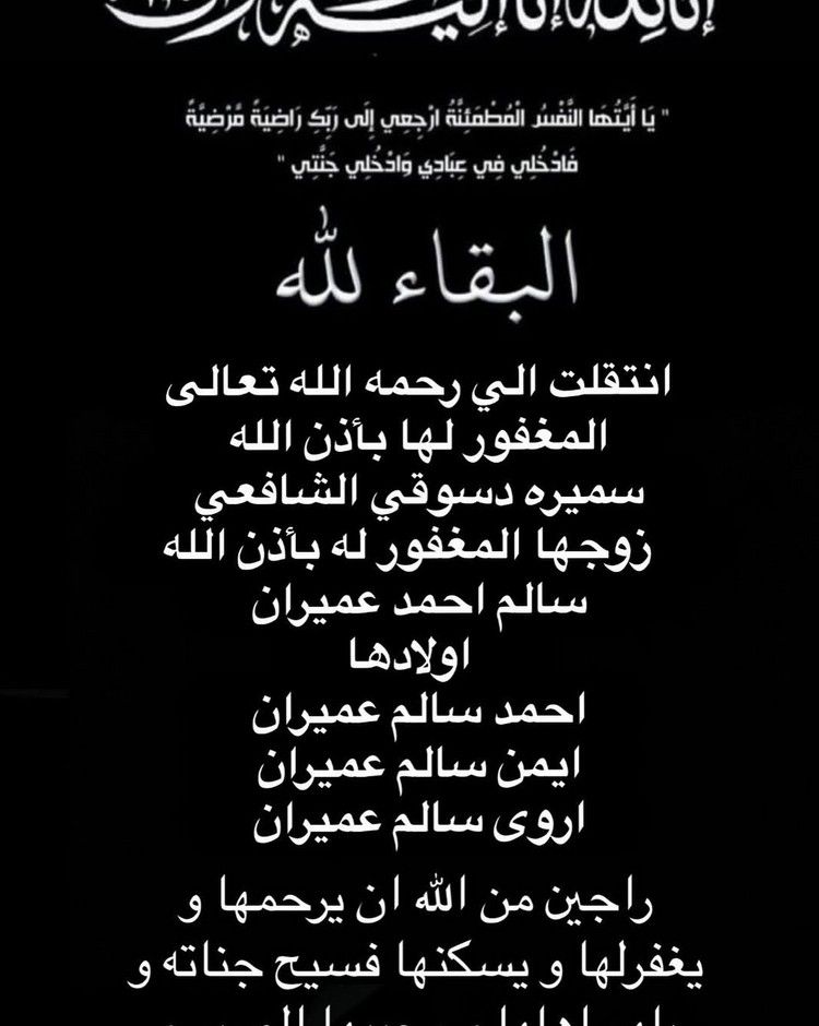 توفيت والدة الفنانة اليمنية أروى بعد صراع طويل مع المرض، وأعلنت الخبر عبر حسابها الرسمي في "انستغرام"، وكتبت منشورا طالبت فيه جمهورها بالدعاء لأمها بالرحمة والمغفرة.