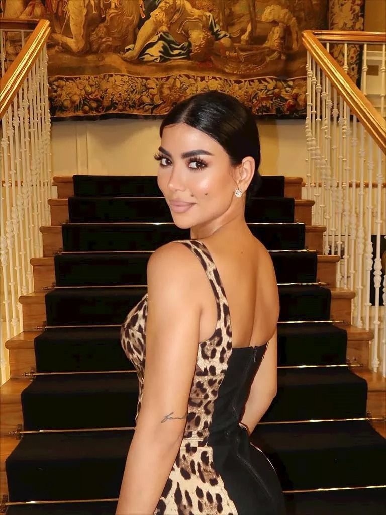 وظهرت كارولين بإطلالة لافتة في أحد الأماكن العامة، مرتدية فستانًا بنقشة التايغر، لفتت به الأنظار ونالت إعجاب جمهورها.