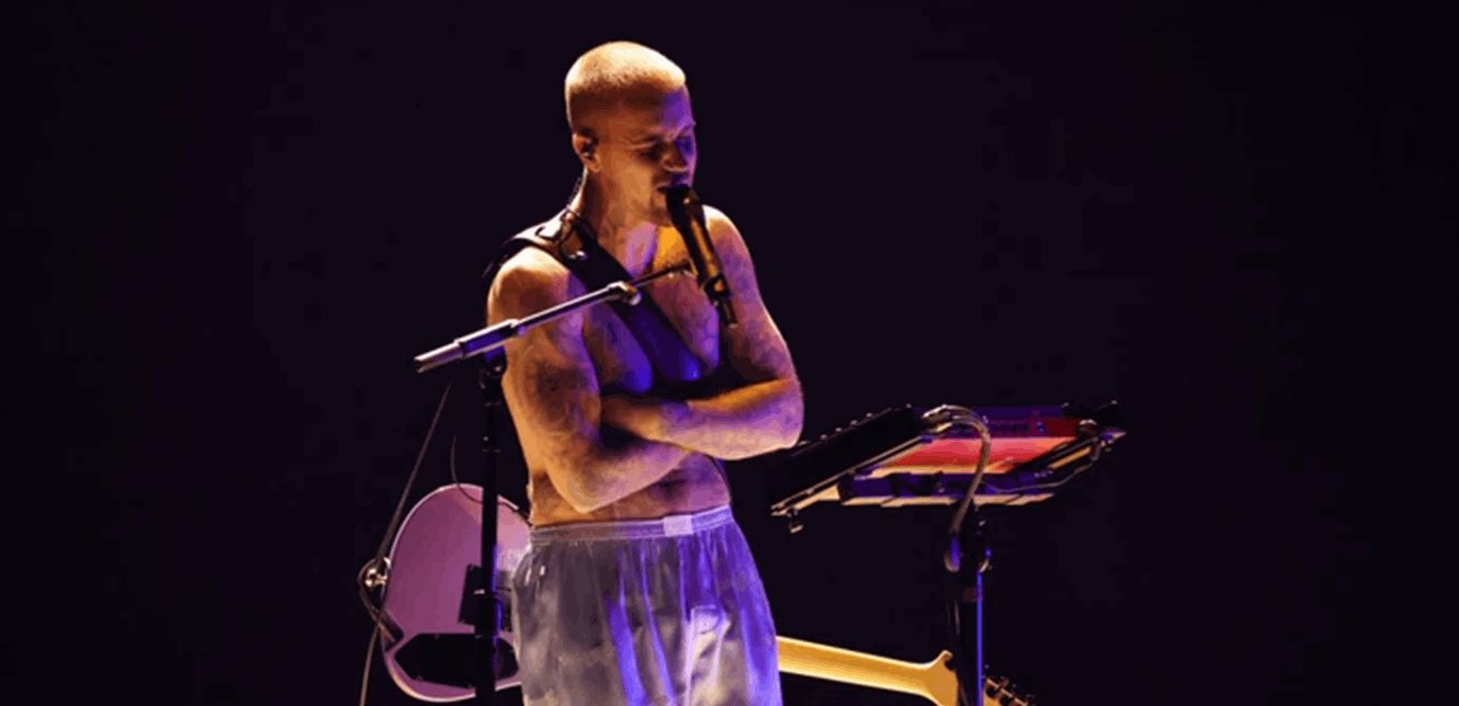 وقدم نجم البوب، البالغ 32 عاماً، عرضه ليلة السبت 11 نيسان، من خلال مجموعة مختصرة مزج فيها بين أعماله الجديدة وبعض أغانيه القديمة، في أول ظهور له كفنان رئيسي في المهرجان، بعد مشاركات سابقة كضيف إلى جانب عدد من الفنانين.