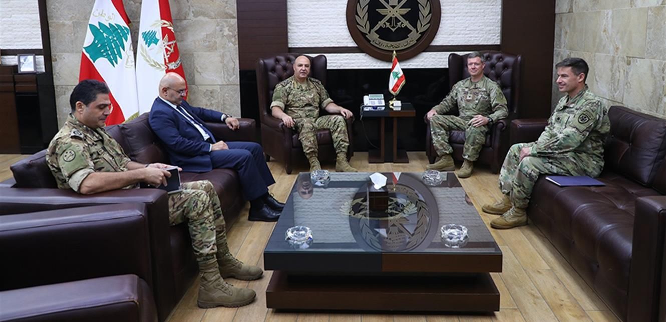 استقبل قائد الجيش العماد جوزاف عون في مكتبه في اليرزة السفيرة الكندية في لبنان السيدة Stefanie MCCOLLUM يرافقها الملحق العسكري الكندي العقيد Gino CHRETIEN، ثم ملحق الدفاع الأميركي العقيد Brian DUNN، يرافقه الملحق العسكري المقدم Adam Kordish في زيارتي تعارف لمناسبة تسلم السفيرة MCCOLLUM والعقيد DUNN مهماتهما في لبنان.