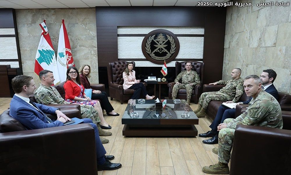 استقبل قائد الجيش العماد رودولف هيكل في مكتبه في اليرزة نائبة المبعوث الأميركي إلى الشرق الأوسط مورغان أورتاغوس مع وفد مرافق بحضور السفيرة الأميركية في لبنان Lisa A. Johnson.