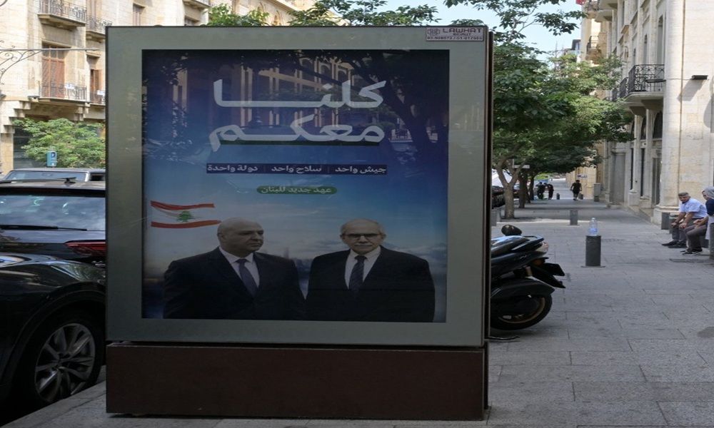 رُفعت صباح اليوم في شوارع وسط بيروت والجوار لوحات إعلانية قبل ٢٤ ساعة من جلسة الحكومة لحصر السلاح. حملت اللوحات صور رئيسي الجمهورية العماد جوزف عون والحكومة نواف سلام، مع شعار “كلنا معكم، جيش واحد، سلاح واحد، دولة واحدة، عهد جديد للبنان”.