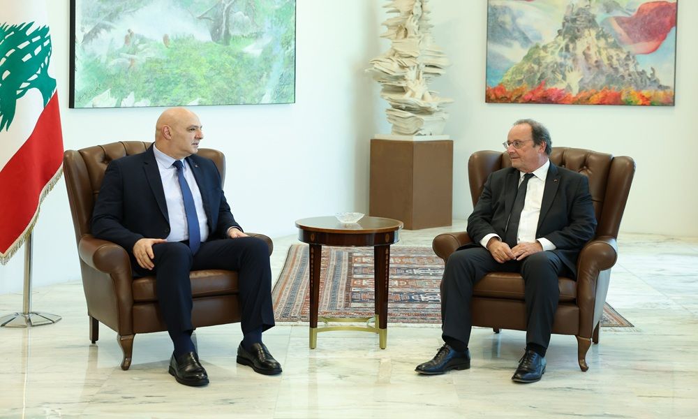 استقبل رئيس الجمهورية جوزاف عون الرئيس الفرنسي السابق فرنسوا هولاند، بعيد وصوله إلى بيروت للمشاركة في حوار تنظّمه جريدة L’Orient–Le Jour وتمّ خلال اللقاء عرض العلاقات اللبنانية-الفرنسية والتعاون القائم بين البلدين، إضافةً إلى جولة أفق شملت الأوضاع في لبنان والتطورات الأخيرة في المنطقة