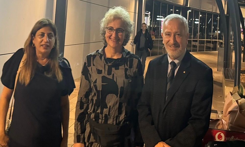 وكان في استقبالها في مطار سيدني، كل من رئيسة المؤسسة البروفيسورة فاديا غصين والدكتور جمال ريفي.