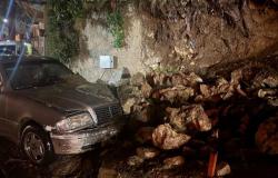 إنهيار جدار دعم على سيارة بسبب الأمطار -