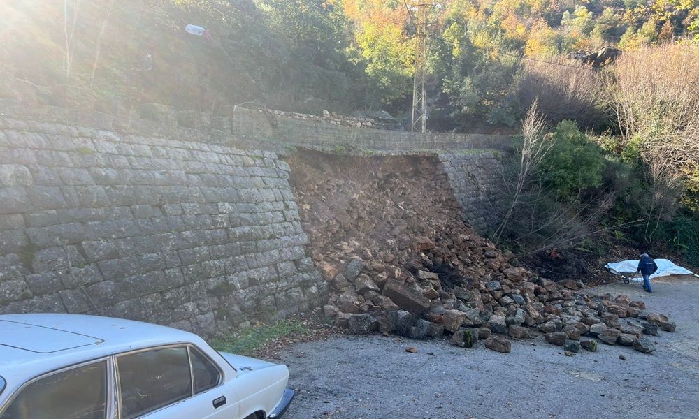 بالصور- انهيار حائط دعم على طريق بتغرين – بسكنتا