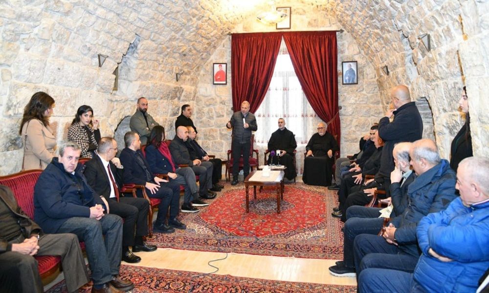 وافتتحَ اللقاء في صالة الكنيسة رئيس الدير الاب ادوار القزي الذي رأى في هذا اللقاء فرصة للتقارب بين المسؤولين والاهالي، شاكرًا لباسيل حضوره الى هذه البلدة وهذا الدير.