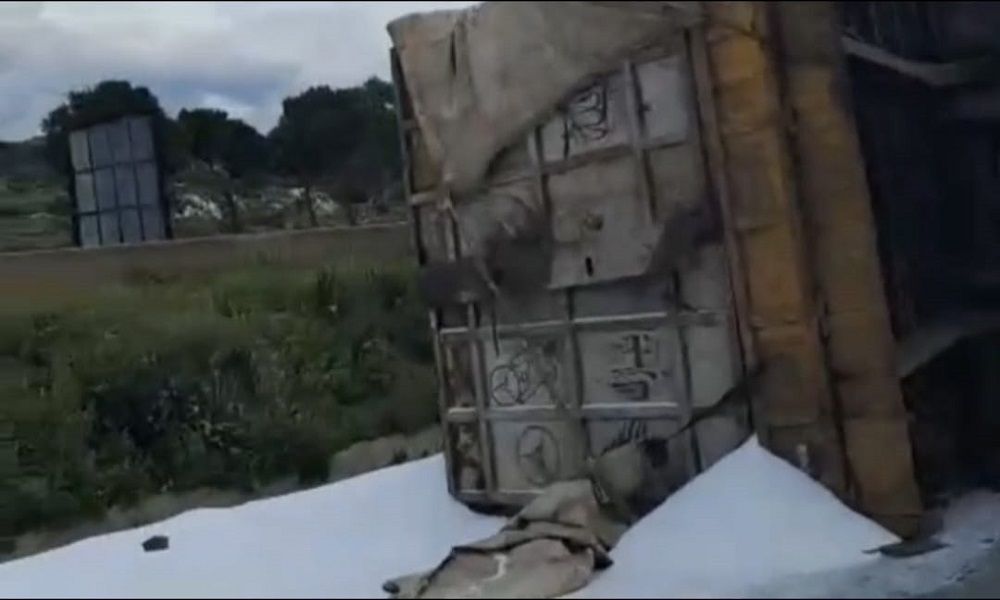 بالفيديو: انقلاب شاحنة محمّلة بالملح