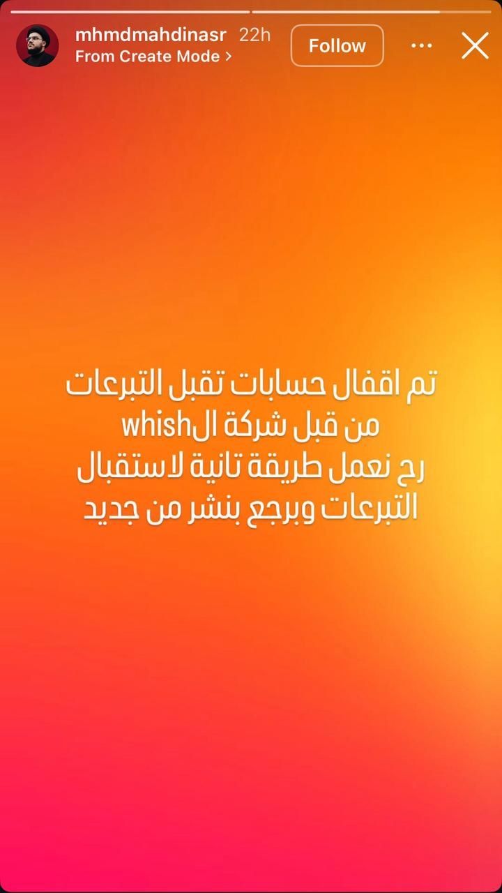وشارك محمد الأمر عبر خاصية الستوري على إنستغرام، بعد أن نشر فيديو يطلب فيه من “الأيادي البيضاء” دعم الحزب ماليًا.