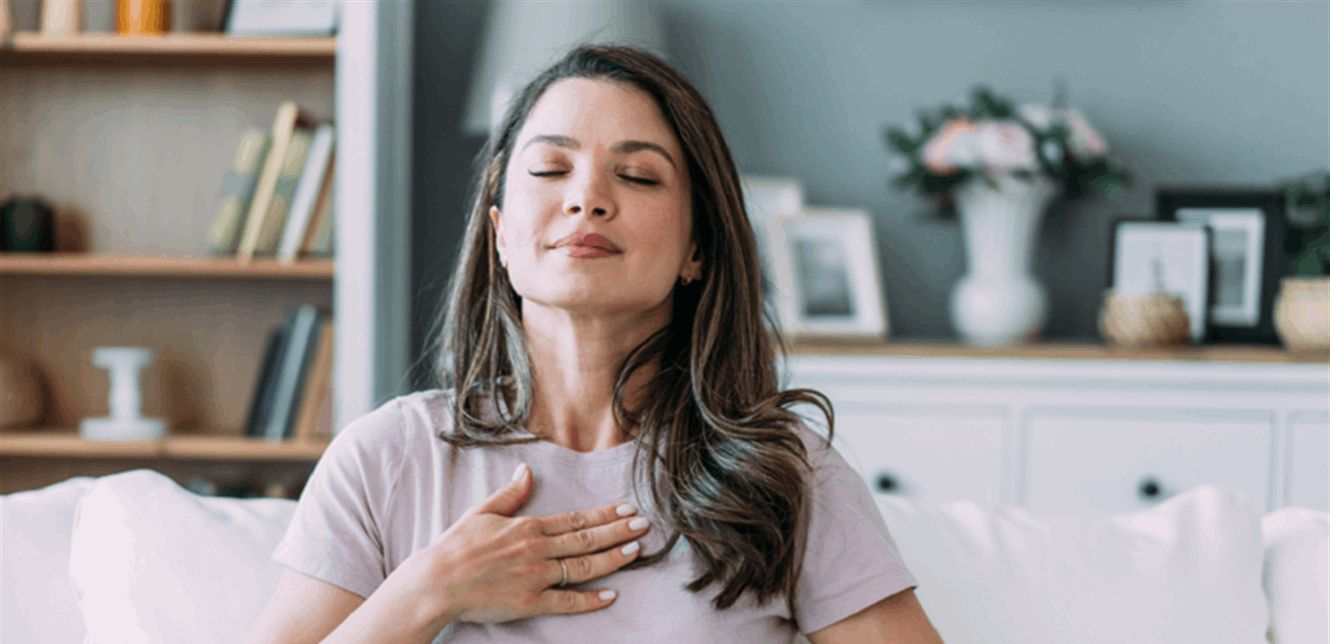 التحكم في التنفس: يعتمد على التنفس العميق باستخدام الحجاب الحاجز بدلا من الصدر. ويتم ذلك بالجلوس في وضعية مريحة، وإرخاء الكتفين، والتنفس ببطء من الأنف، بحيث يتمدد البطن للخارج، ثم الزفير برفق من الفم أو الأنف مع إحساس البطن بالانكماش.