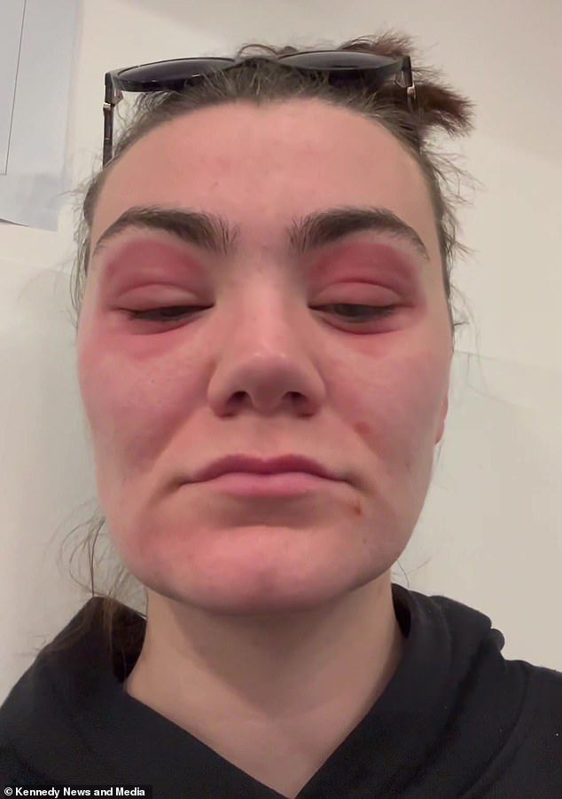 رغم استبعادها سابقاً لأي أمراض جلدية كالصدفية أو الإكزيما، عانت بعد التورم من بشرة حمراء، جافة ومتقشرة، خاصة حول الجفون. ونصحها الأطباء بالتخلص من الزجاجة فورًا.