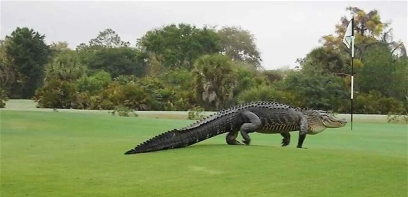 بالفيديو.. تمساح عملاق يقتحم ملعب غولف