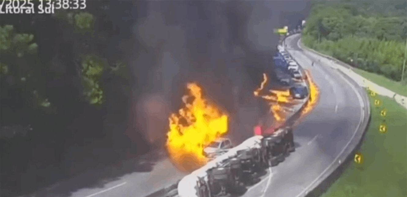 وثق مشهد فيديو متداول على نطاق واسع، لحظة انفجار صهريج يحتوي مادة كيميائية على الطريق السريع جنوب البرازيل، مما أسفر عن اشتعال النيران بـ27 مركبة وإصابة 12 شخصاً على الأقل.