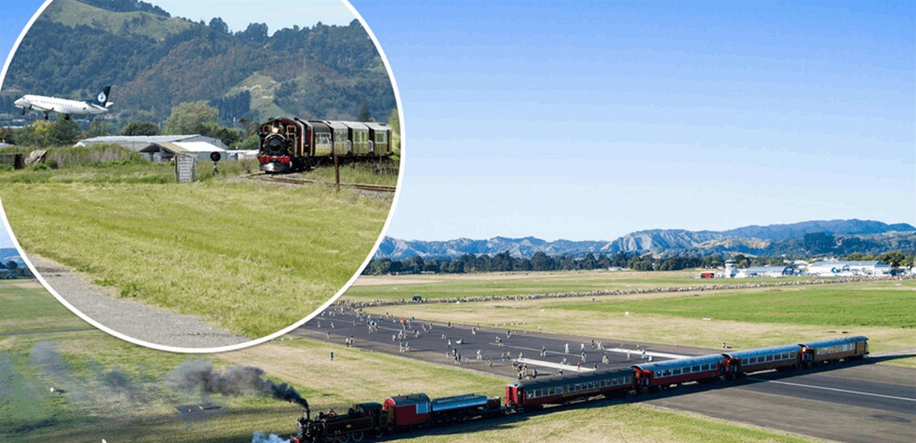 في مشهد نادر وفريد، يمكن أن تُشاهد طائرة تقلع أو تهبط في الوقت ذاته الذي يعبر فيه قطار "جيزبورن سيتي فنتغ ريلوي" نفس المدرج، ما يتطلب تنسيقًا دقيقًا بين برج المراقبة وسائقي القطارات.