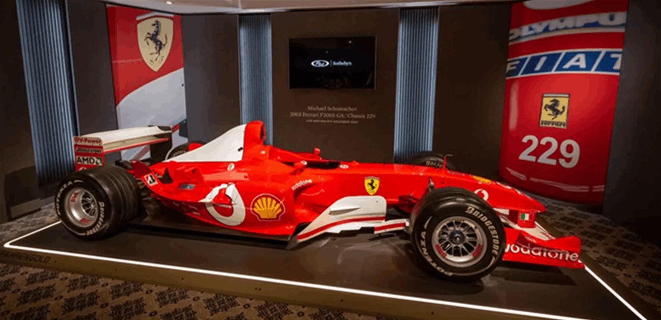 تم بيع سيارة فيراري التي كان يقودها النجم مايكل شوماخر في مشواره نحو الفوز ببطولة العالم للفورمولا 1 عام 2001 في مزاد علني مقابل 16 مليون يورو على هامش سباق جائزة موناكو الكبرى، الأحد.