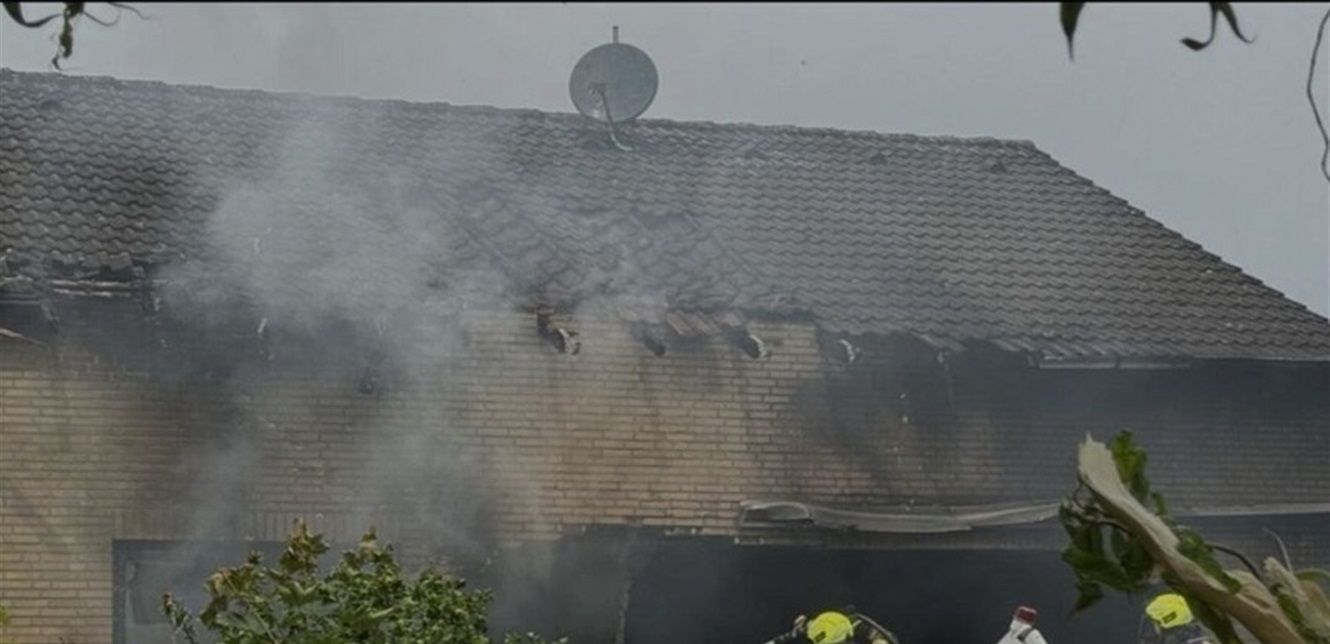 وذكرت صحيفة "بيلد" الألمانية أن أعمدة دخان كثيفة تصاعدت في سماء مدينة كورشنبروخ في منطقة الراين الأدنى، بينما التهمت النيران جزءا من المنزل.