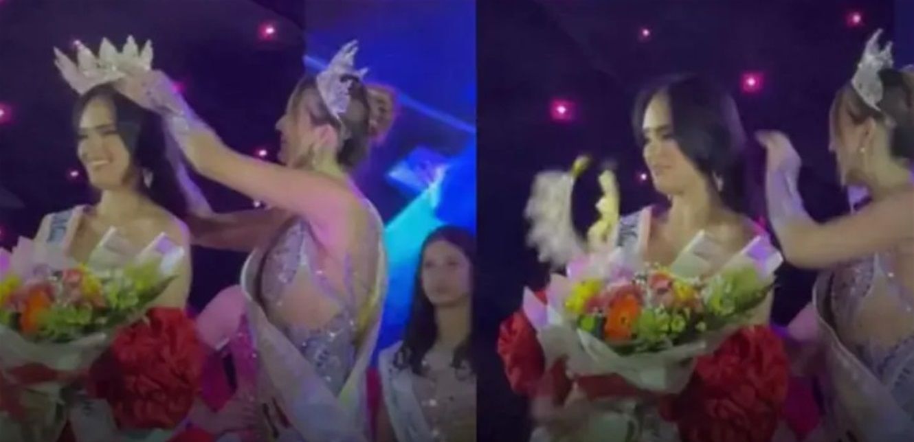 ويظهر في الفيديو الذي انتسر عبر مواقع التواصل الاجتماعي كيف ارتكبت الملكة المنتهية ولايتها، عدة أخطاء أثناء تتويج الملكة الجديدة لدرجة أنها أسقطت التاج أكثر من مرة.
