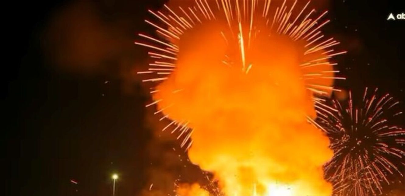 وارتفعت ألسنة اللهب والدخان الكثيف والألعاب النارية الحية في الهواء، في عرض ناري فوضوي شوهد على بعد أميال.