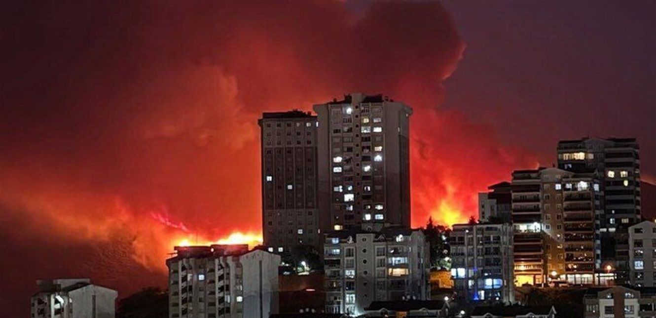 اندلعت حرائق ضخمة ليل السبت في الجبال الحرجية المحيطة بمدينة بورصة شمال غربي تركيا، وامتدت بسرعة نتيجة الرياح القوية، مما أدى إلى توهج السماء باللون الأحمر فوق الضواحي الشرقية للمدينة.