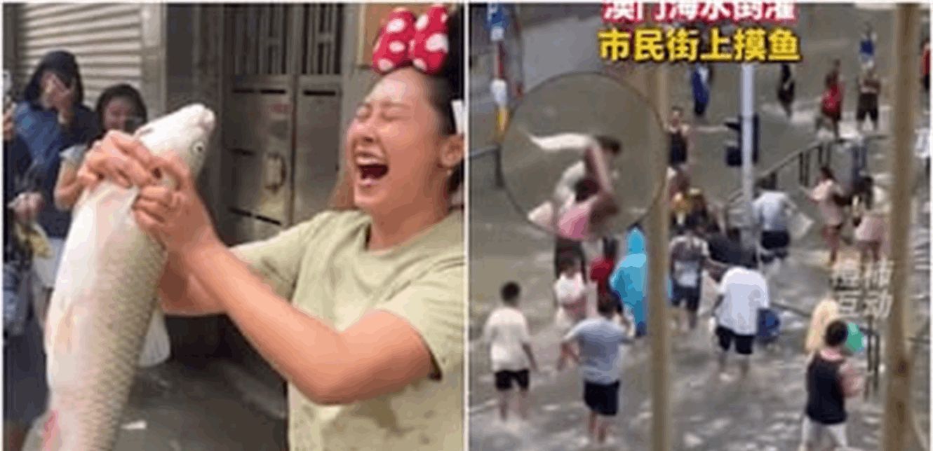 تحولت شوارع ماكاو، في الصين، إلى ما يشبه بركة ضخمة بعد مرور إعصار راجاسا، حيث انتشرت على مواقع التواصل الاجتماعي مقاطع لسكان محليين يصطادون الأسماك في الطرق المغمورة بالمياه مستخدمين الشباك والأكياس البلاستيكية.