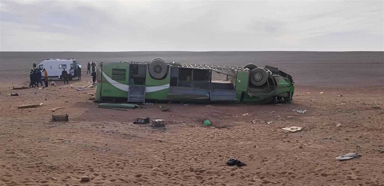 حادث دموي في دولة عربية.. مصرع 14 وإصابة 34 بانقلاب حافلة (صور)