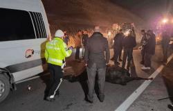 وأظهرت صور ومقاطع فيديو على الطريق السريع في محافظة مالاطيا، جنوب تركيا، مشاهد مأساوية لخيول نافقة، بينها واحدة تحت حافلة نقل ركاب متوسطة، كما تعرضت سيارة خاصة لأضرار جسيمة.