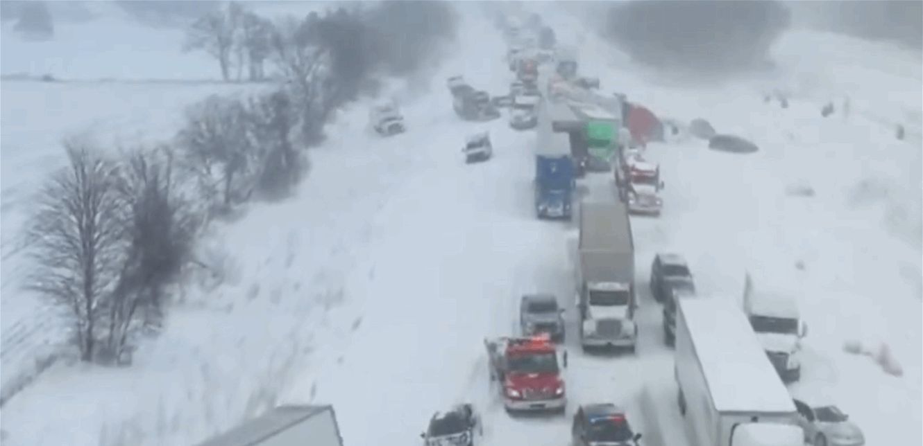 وقال مسؤولون إن السلطات تعمل على إعادة فتح طريق شهد الحادث في ظل عاصفة ثلجية قوية، فيما أوضحت الشرطة أنه تم الإبلاغ عن إصابات متعددة من دون تسجيل وفيات، بعد انزلاق عشرات المركبات واصطدامها على الطريق السريع "آي-196".