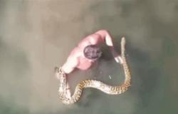 بالفيديو.. لبناني يسبح مع أكبر أفاعي العالم -