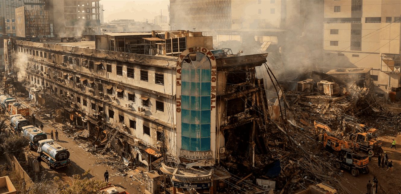 تحول مجمع "غول بلازا" التجاري في كراتشي إلى رماد بعد حريق هائل استمر يومين، مخلفاً 67 قتيلاً على الأقل و15 مفقوداً، في أسوأ حريق تشهده المدينة منذ أكثر من عقد.