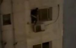 أظهر مقطع مصور انتشر بشكل واسع على مواقع التواصل مساء أمس الأربعاء، لص يحاول الفرار عبر نافذة إحدى الشقق في مبنى مرتفع في القاهرة، إلا أنه سقط من علو فوق جهاز المكيف ( AC)، وأصبح متدلياً في الهواء.