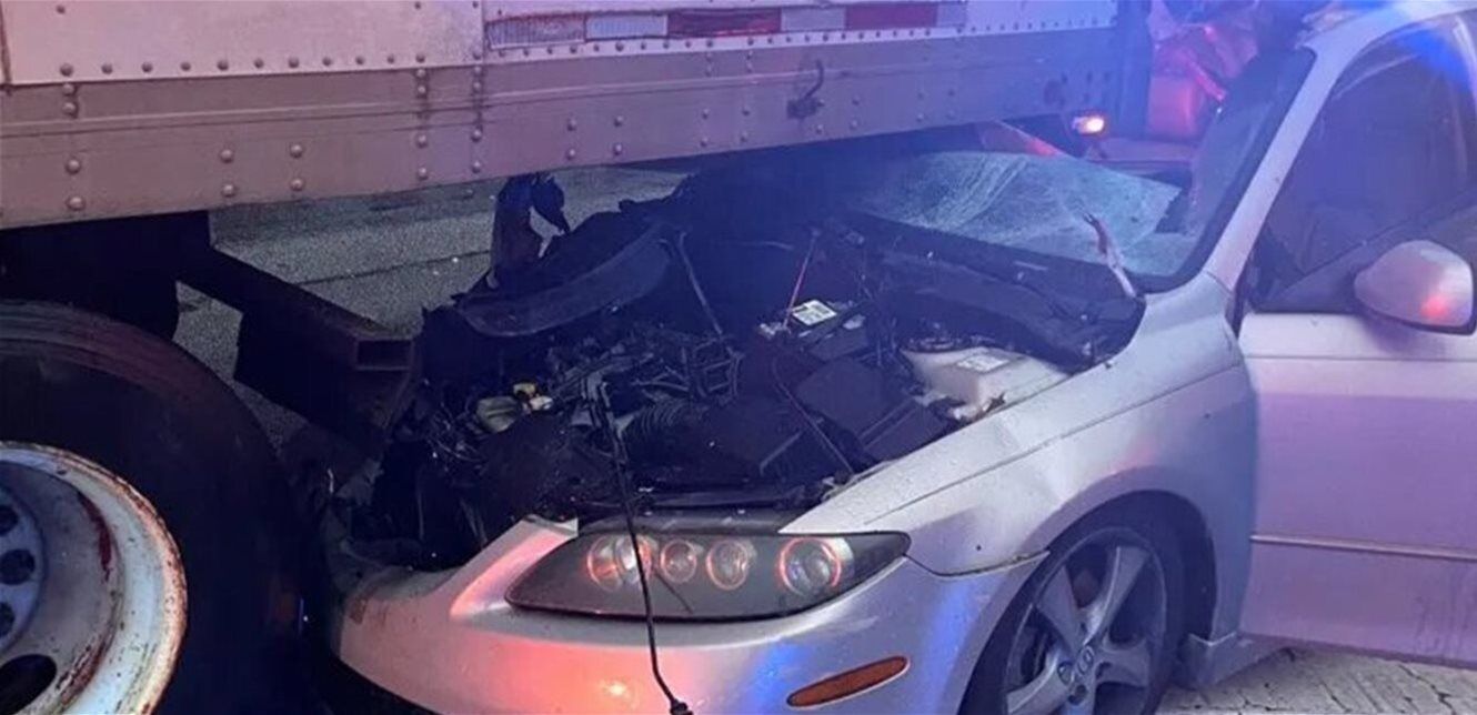 وأوضحت إدارة شرطة كارولتون أن السائق اعترف بأنه كان مشتتًا باستخدام هاتفه قبل لحظات من الحادث، إذ اصطدمت سيارته بشاحنة ذات 18 عجلة وانزلقت تحتها، ما تسبب في تحطم الزجاج الأمامي وتهشم مقدمة المركبة.