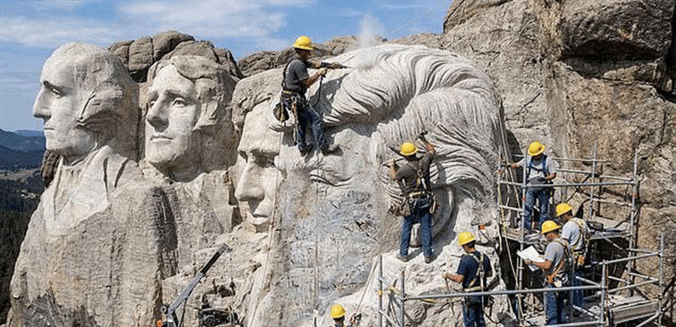 في خطوة وُصفت بأنها غير مسبوقة منذ أكثر من 85 عاماً، كشف تقرير لصحيفة "ديلي ميل" عن بدء أعمال نحت إضافة جديدة إلى جبل راشمور الشهير في ولاية ساوث داكوتا الأميركية، عبر تنفيذ تمثال للرئيس الأميركي دونالد ترامب إلى جانب الوجوه الأربعة التاريخية الموجودة على الجبل.