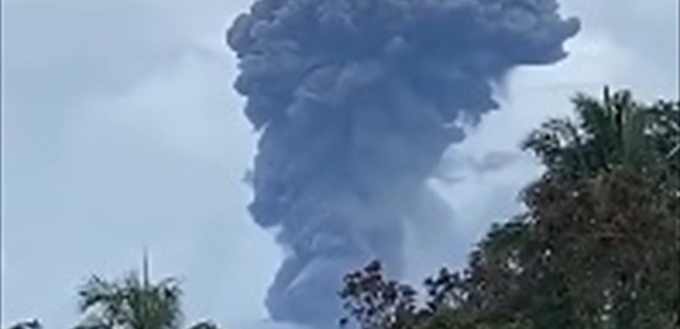 ورافق الثوران انبعاثات كثيفة من الرماد الأبيض والرمادي، انتشرت باتجاه الغرب.