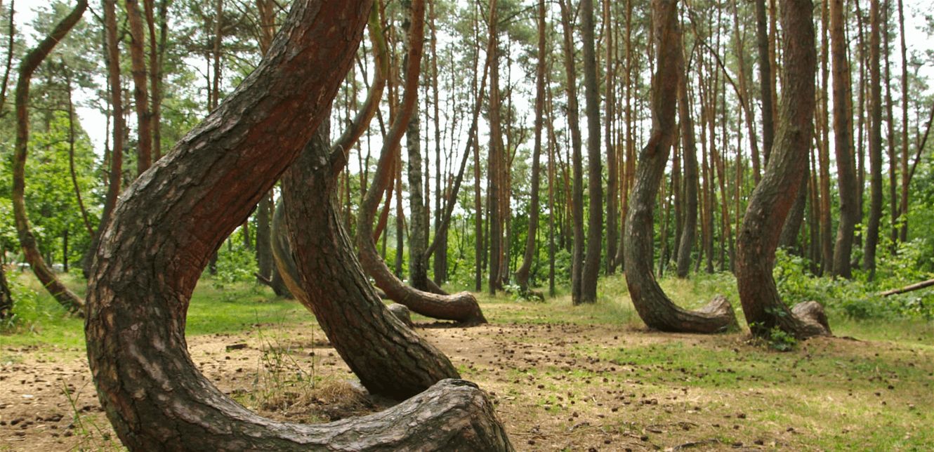 في شمال غرب بولندا، تقف "الغابة الملتوية" كواحدة من أكثر المشاهد الطبيعية غرابة في أوروبا، إذ تضم نحو 400 شجرة من صنوبر اسكتلندي، تنحني جذوعها بشدة نحو الشمال قرب القاعدة قبل أن تعود فترتفع بشكل مستقيم إلى الأعلى.