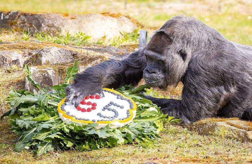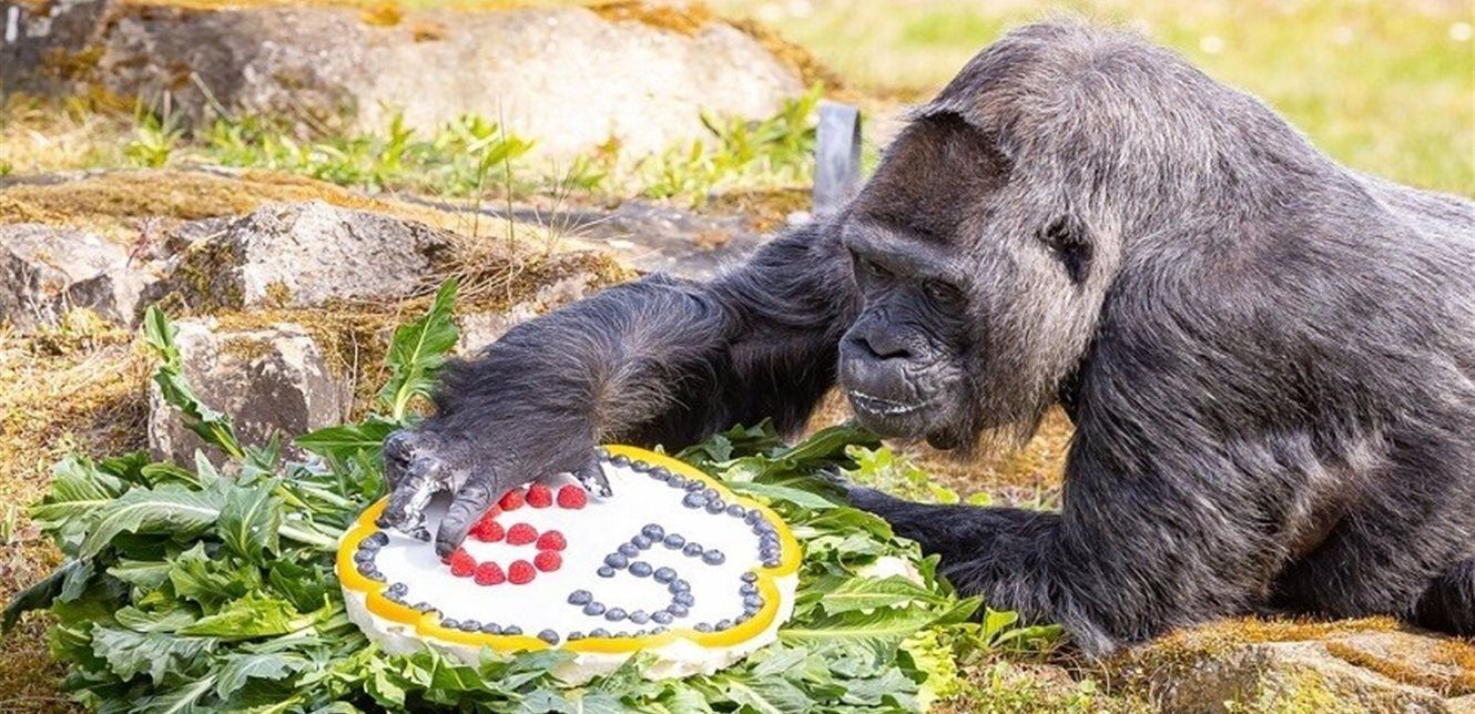 بالصورة... أكبر غوريلا بالعالم تحتفل بعيد ميلادها الـ69 في برلين
