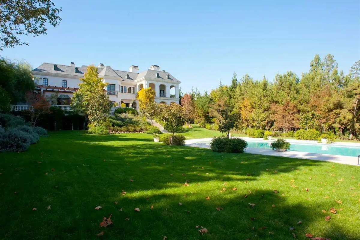 ويقع العقار في 100 North Carolwood Drive، ويضم 7 غرف نوم و13 حمّاماً، إلى جانب مسرح سينمائي، قبو نبيذ، صالة رياضية، وحدائق واسعة توفّر مستوى عالياً من الخصوصية. وقد صمّمه المعماري ريتشارد لاندري، فيما نفّذه المطوّر محمد حديد عام 2002.