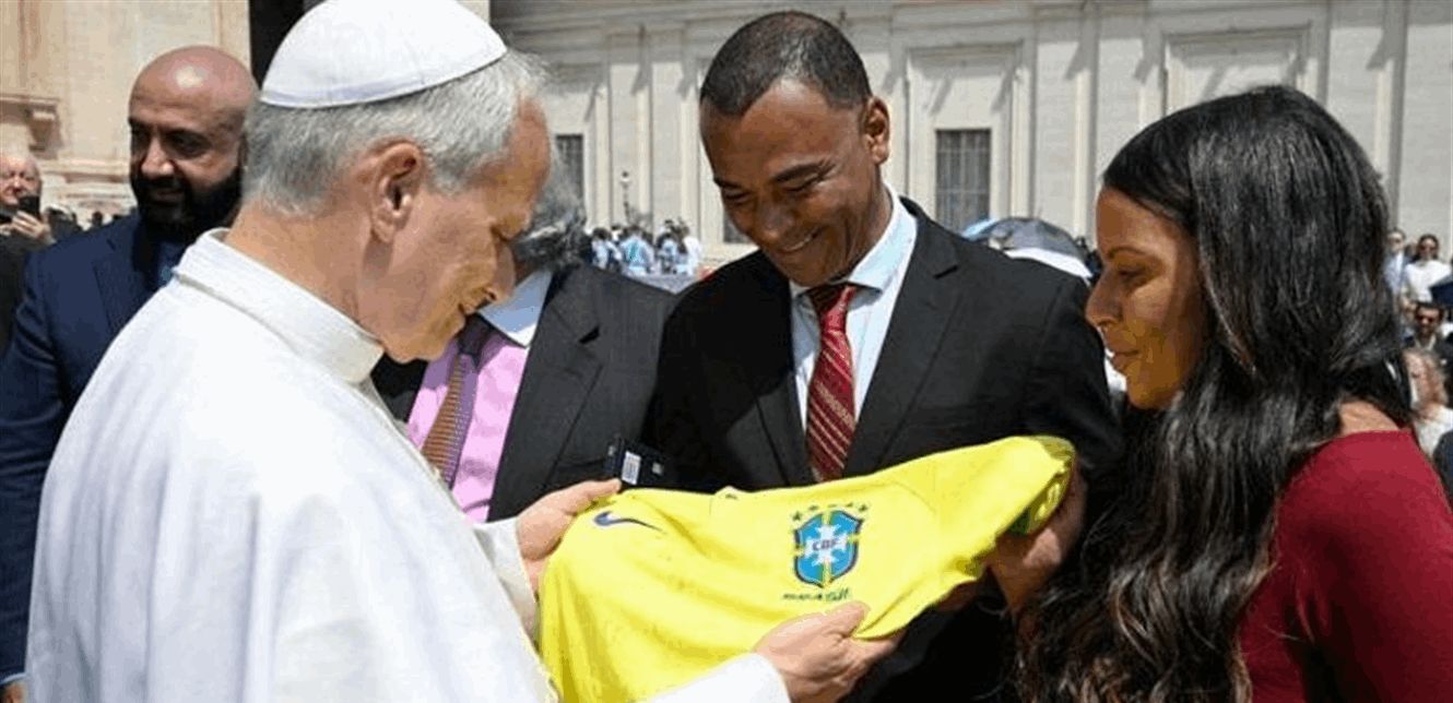 أهدى كافو، ظهير منتخب البرازيل الأسطوري وفريق ميلان الإيطالي السابق، قميص السيليساو إلى البابا ليوون الرابع عشر.