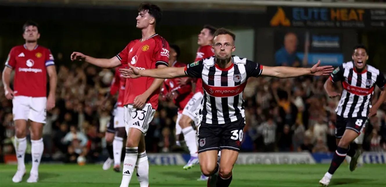 تعرض مانشستر يونايتد لهزيمة مفاجئة وغير مسبوقة أمام غريمسبي تاون، المنتمي لدوري الدرجة الرابعة الإنكليزي، في الدور الثاني من كأس رابطة الأندية الإنكليزية المحترفة.