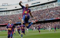 وحسم برشلونة النتيجة في شوطها الأول بفضل رافينيا (9 و21 من ركلتي جزاء) وداني أولمو (38)، قبل أن يوقع رافينيا على الهاتريك (51) ويضيف البرتغالي كانسيلو الخامس، مقابل هدفين عبر أوسو (45+3) والسويسري جبريل سو (90+2).
