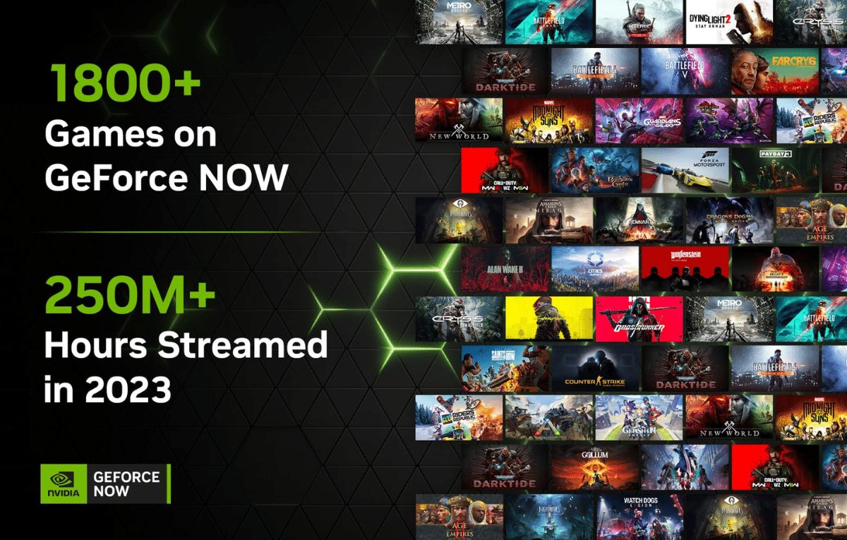 وأعلنت الشركة في تدوينة جديدة أن هناك الآن أكثر من 1800 لعبة يمكن بثها عبر GeForce NOW، وأن اللاعبين بثوا 250 مليون ساعة عبر الخدمة في عام 2023.
