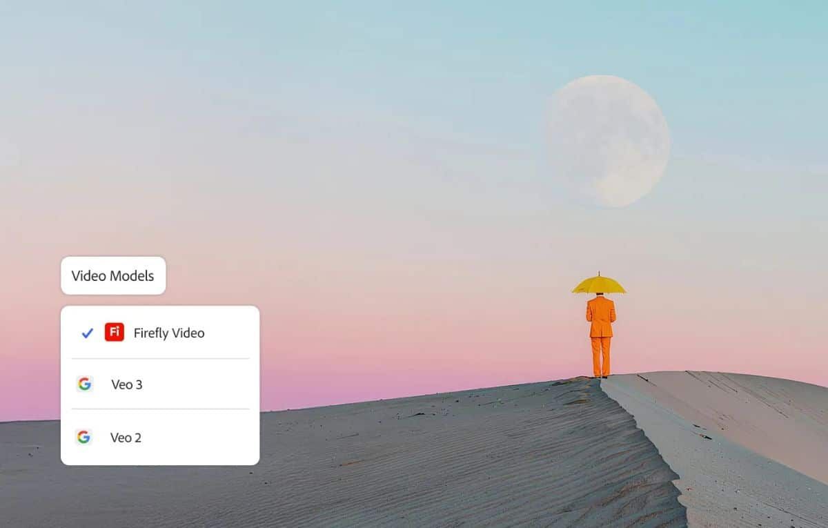 يُذكر أن أدوبي أضافت في يونيو دعمًا لنماذج خارجية، إذ أدرجت دعمًا لنموذج Veo 3 الذي كشفت عنه جوجل خلال مؤتمرها I/O 2025. ويُعد Veo 3 من النماذج القليلة القادرة على توليد فيديو بصوت مدمج.