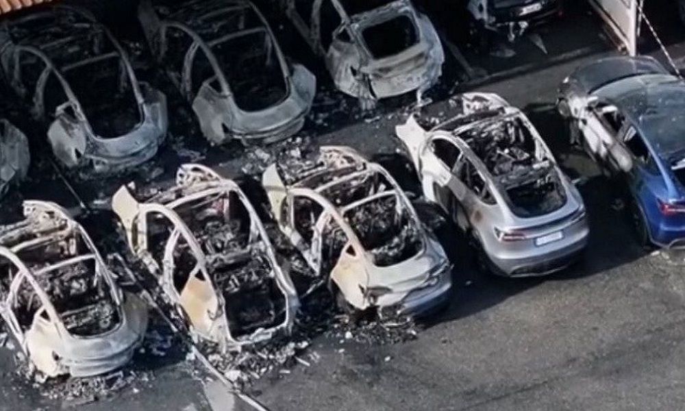 حريق مشبوه يدمر 17 سيارة “تسلا” في روما