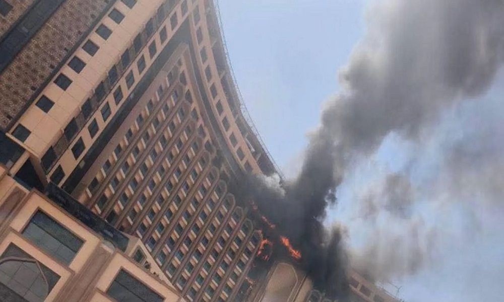 وشوهدت النيران وهي تلتهم الطوابق العليا من الفندق وسط تصاعد سحب الدخان الأسود الكثيف، حيث هرعت فرق الدفاع المدني لإخماد النيران.