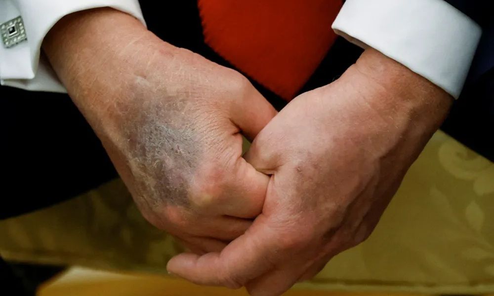 فقد لاحظ الكثيرون كدمات على يدي ترامب، البالغ من العمر 79 عاما في الأشهر الأخيرة، والتي كانت تُخفيها أحيانًا مساحيق التجميل الثقيلة أو بوضع يده الأخرى فوق الكدمة.