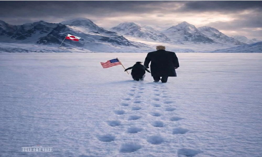 ونشر الحساب الرسمي للبيت الأبيض على منصة «إكس» صورة مولّدة بالذكاء الاصطناعي تظهر ترامب يسير على أرض جليدية برفقة بطريق، مع خلفية تصور مناظر طبيعية لغرينلاند.